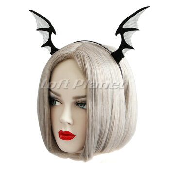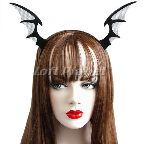 小悪魔カチューシャ バット・ウイングのハロウィン・コスプレ・ヘアバンド黒 M1-J12914