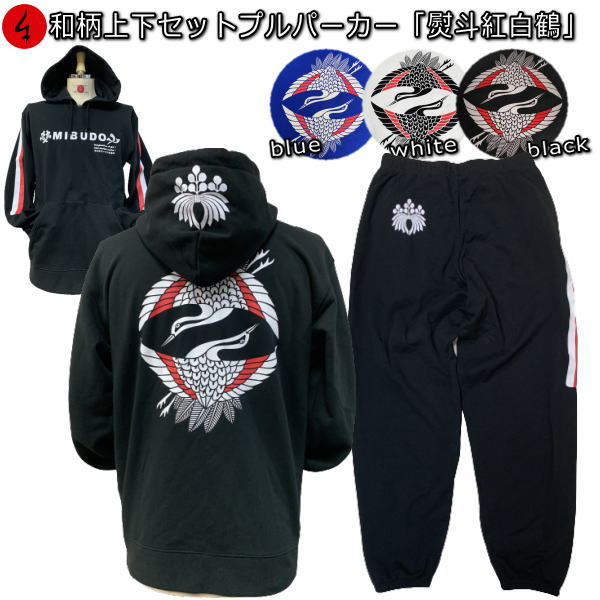 【最大P29倍セール】和柄 上下セット プル パーカー「熨斗紅白鶴」家紋 鶴 紅白 熨斗 向い鶴 パジャマ スウェット パイル 京都 メンズ レディース 大きいサイズ 手染 京友禅