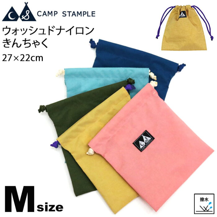 スタンプル人気シリーズ「CAMP STAMPLE」のスクールシリーズに、 撥水加工で安心のきんちゃく袋が登場! ナイロン製で軽くて扱いやすく、 M・Lサイズはエプロンや体操服を入れるのにぴったり♪