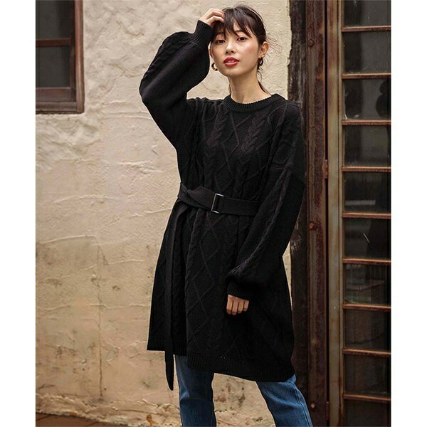 ジーラ バイ リュリュ(ファッション)のベルト付ケーブル編ニットワンピースこの秋冬1枚は欲しい、ボリュームのあるケーブル編のニットワンピース。